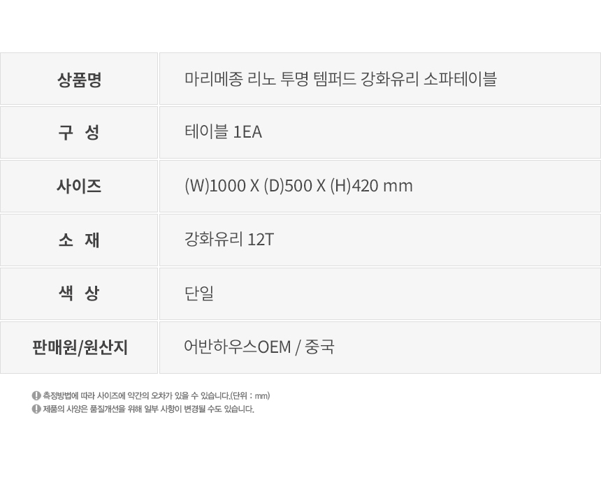 | 품명 | 마리메종 리노 투명 템퍼드 강화유리 소파테이블 | ||
